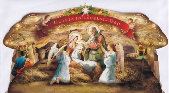 Jednoduchý skládací betlém formát A5 s obálkou a přáním.